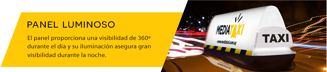 Está frente al medio alternativo de publicidad más llamativo y selectivo de los últimos tiempos, implementado con rotundo éxito en lugares de vanguardia publicitaria como Estados Unidos, Canadá, Australia, Europa y Asia. Provee la máxima cobertura y penetración del mercado. Ofrece una visibilidad de 360º, llegando a ambos lados de la calle. La comunicación es móvil y al nivel de los ojos de los peatones, conductores y transporte público de pasajeros. Los taxis están por todas partes y cuando menos te lo esperas estás siendo impactado por uno, manteniendo la marca fresca durante más tiempo en tu memoria.